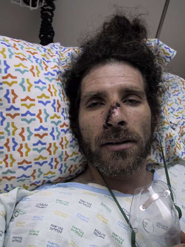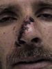 splitting his nose.